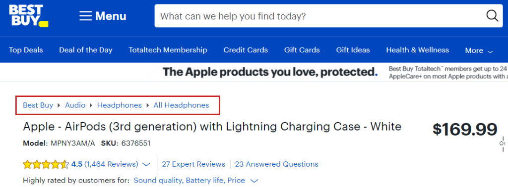 When a user lands on the product page, they can click on “All Headphones” or “Audio” and check out what other headphones and audio products the website sells.