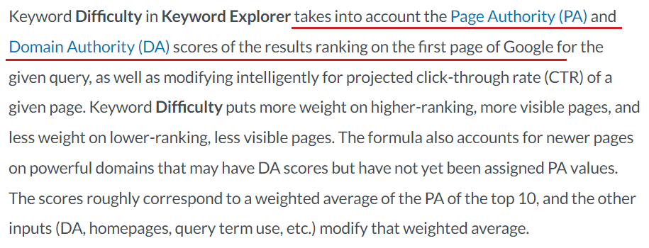 Unfortunately, they don’t go into much detail or breakdown of MOZ’s Keyword Difficulty score and how exactly it’s being calculated. They give a general guideline that on a scale of 0-100, a score of 1 is not difficult at all and 100 is very difficult.
